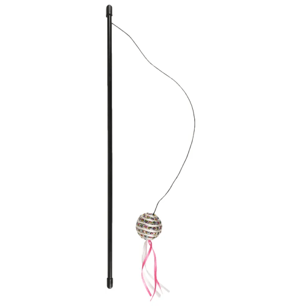 اللعب مع قطتك لم يكن أكثر متعة من قبل! مع هذه العصا، يمكنك الاستمتاع بساعات من الترفيه. الخيط المرن يجعل الكرة تتأرجح ذهابًا وإيابًا، مما يسمح لقطتك بتحفيز غرائز الصيد ومنع الملل.