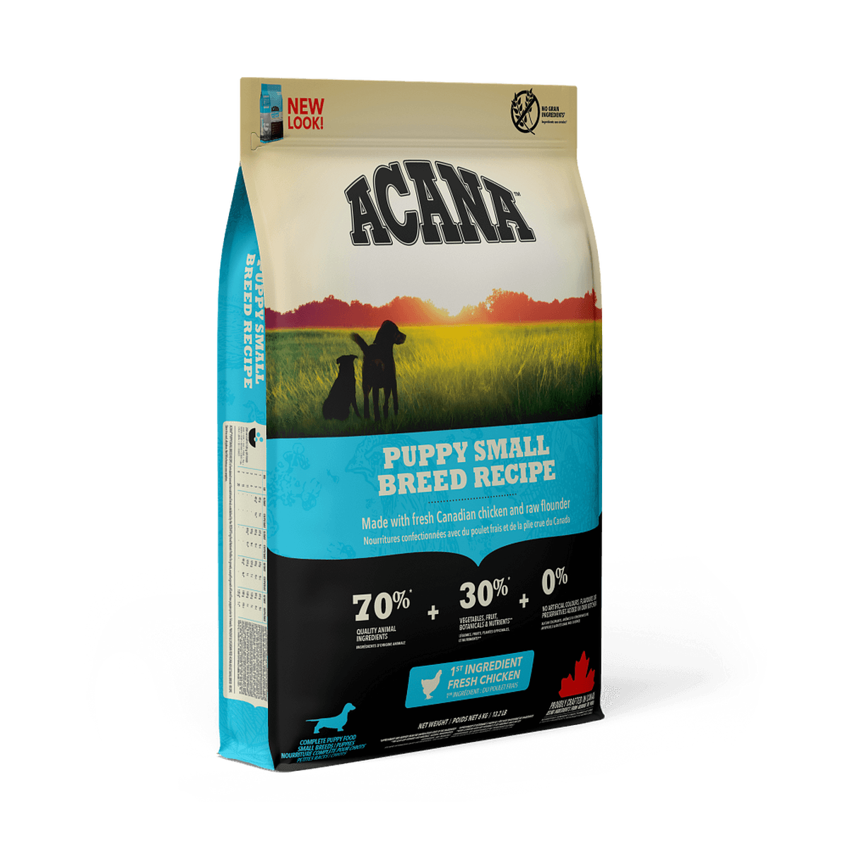Metabolizable Energy is 3660 kcal/kg (439 kcal per 250ml/120g cup), with 32% from protein, 22% from carbohydrates, and 46% from fat. ACANA Puppy Small Breed is formulated to meet the nutritional levels established by FEDIAF for All Life Stages, for puppies weighing up to 9 kgs at maturity, and except for growth of Great Dane puppies prior to 14 weeks.