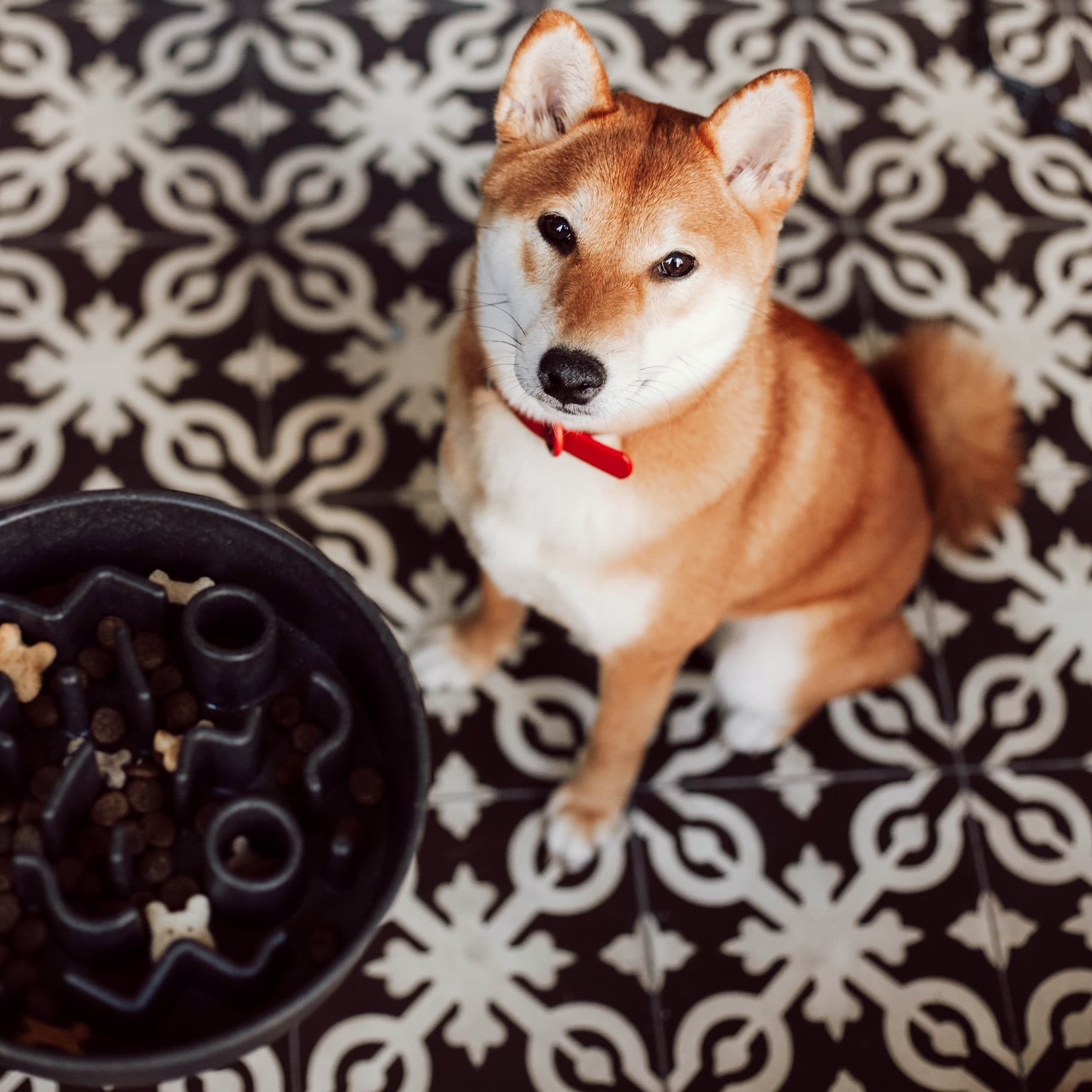 The slow feeder is available in two sizes, Ø21 (small) and Ø28 cm (large). The small size is suitable for dog breeds such as a Cocker Spaniël, Beagle, Shiba Inu, Dachshund or a Jack Russell. The biggest size is suitable for larger dog breeds such as a Labrador, Golden Retriever, Border Collie, Sheep dog or a large Labradoodle.