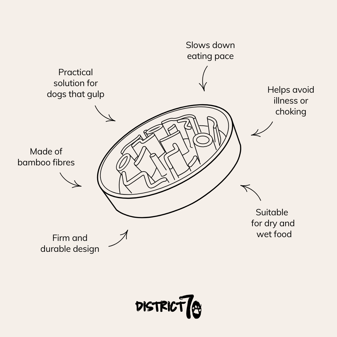 Has your dog already finished its meal before you even turn around? And next thing you know, it’s gagging or barking? When a dog eats too quickly, it swallows air along with their food which can cause pain and discomfort or even more side effects. The stylish and practical BAMBOO slow feeder offers your dog a solution to eat at a slower pace.