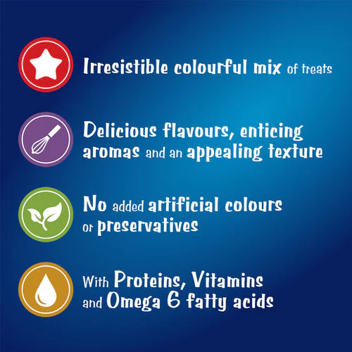 These treats come in a variety of shapes and flavors, including chicken, liver, and turkey, offering a mouth-watering taste that will captivate your cat’s senses. With three irresistible flavors in every bag, they’re triple the treat.