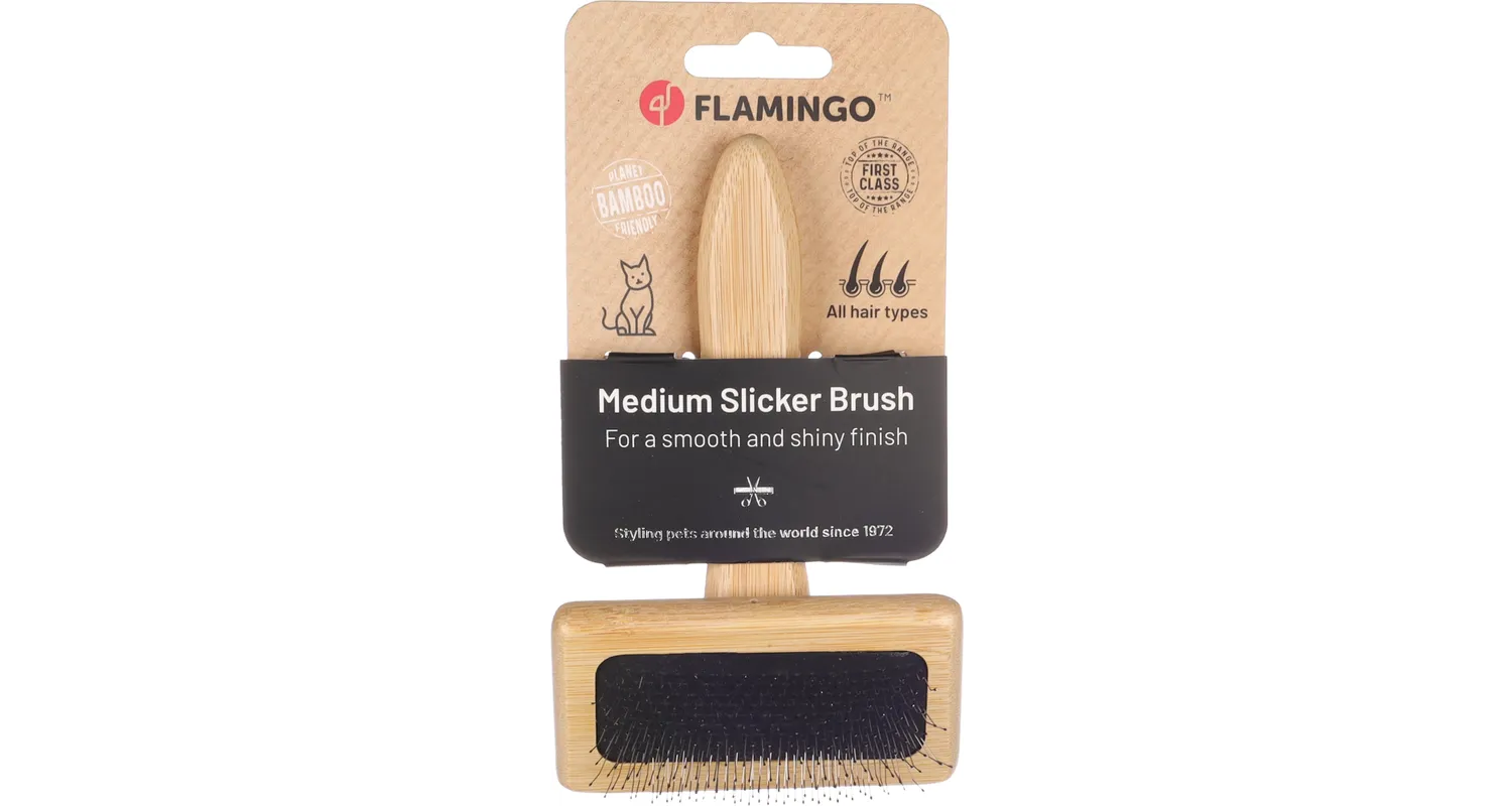 This brush is made from eco-friendly bamboo and features finely curved bristles to remove knots and loose hairs. Ideal for cats with both short and long coats.