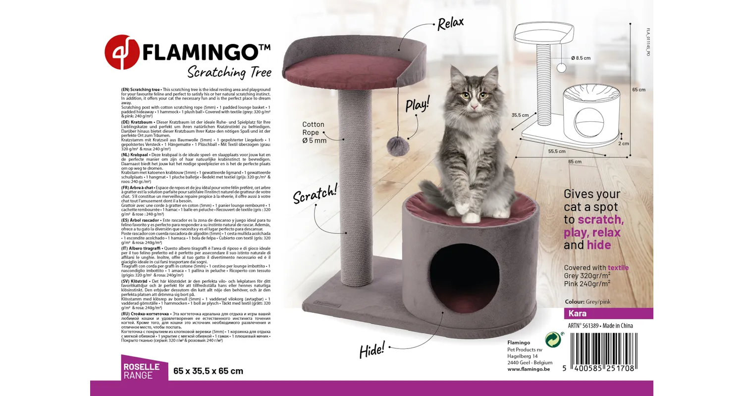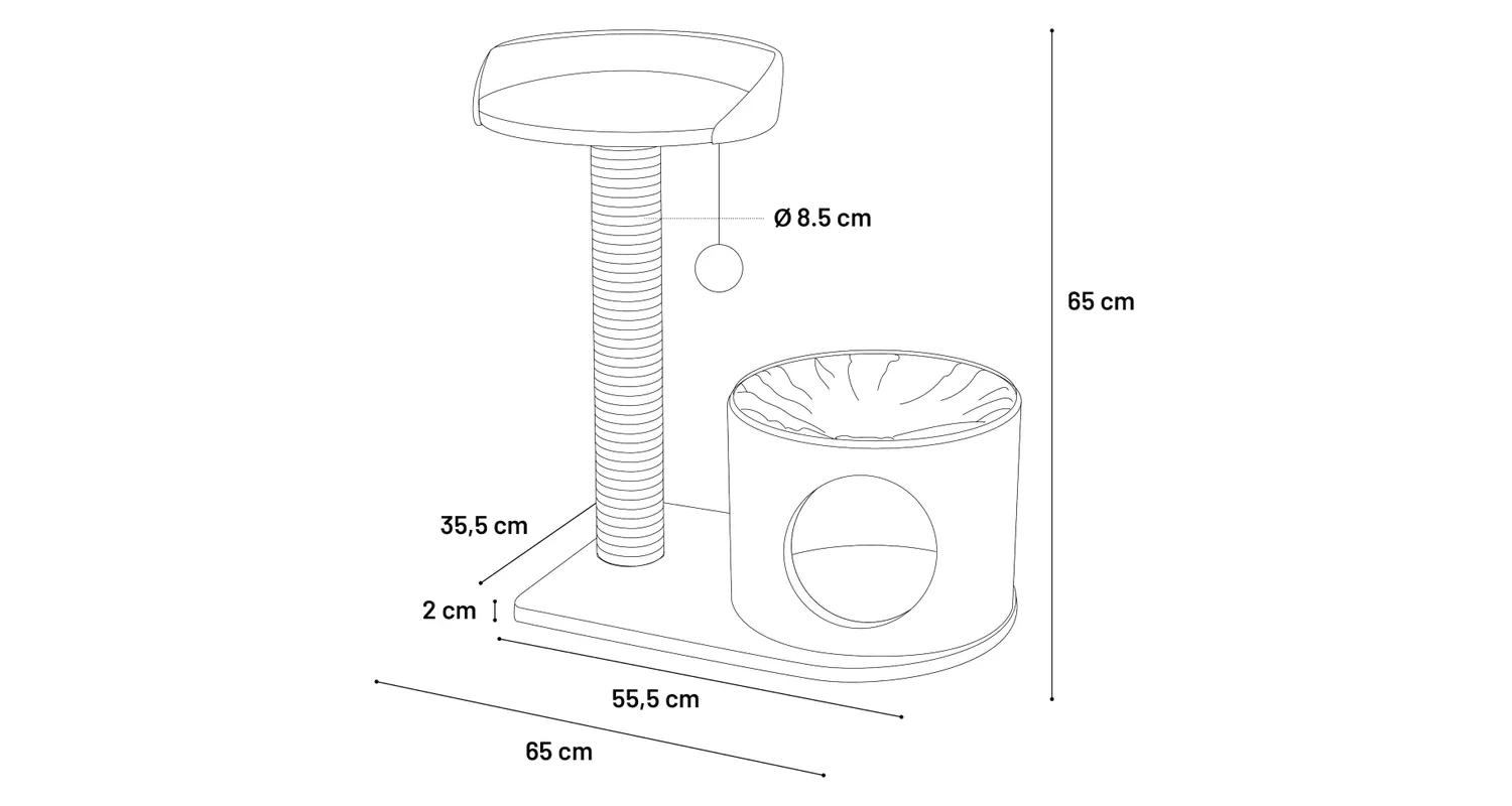 - Thickness base plate: 2 cm and diameter scratching post: 8,5 cm