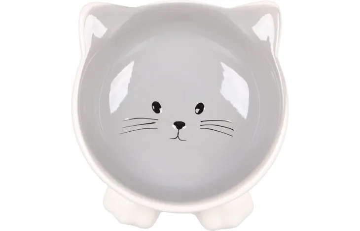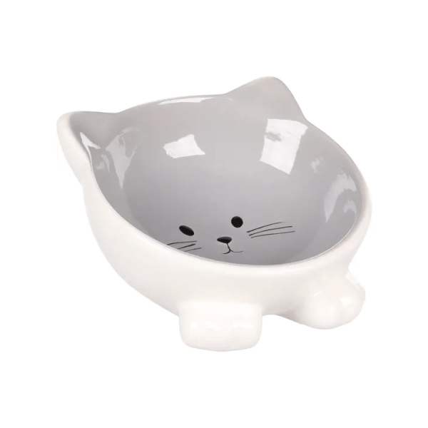 Flamingo Puzi Ceramic Cat Bowl, Grey