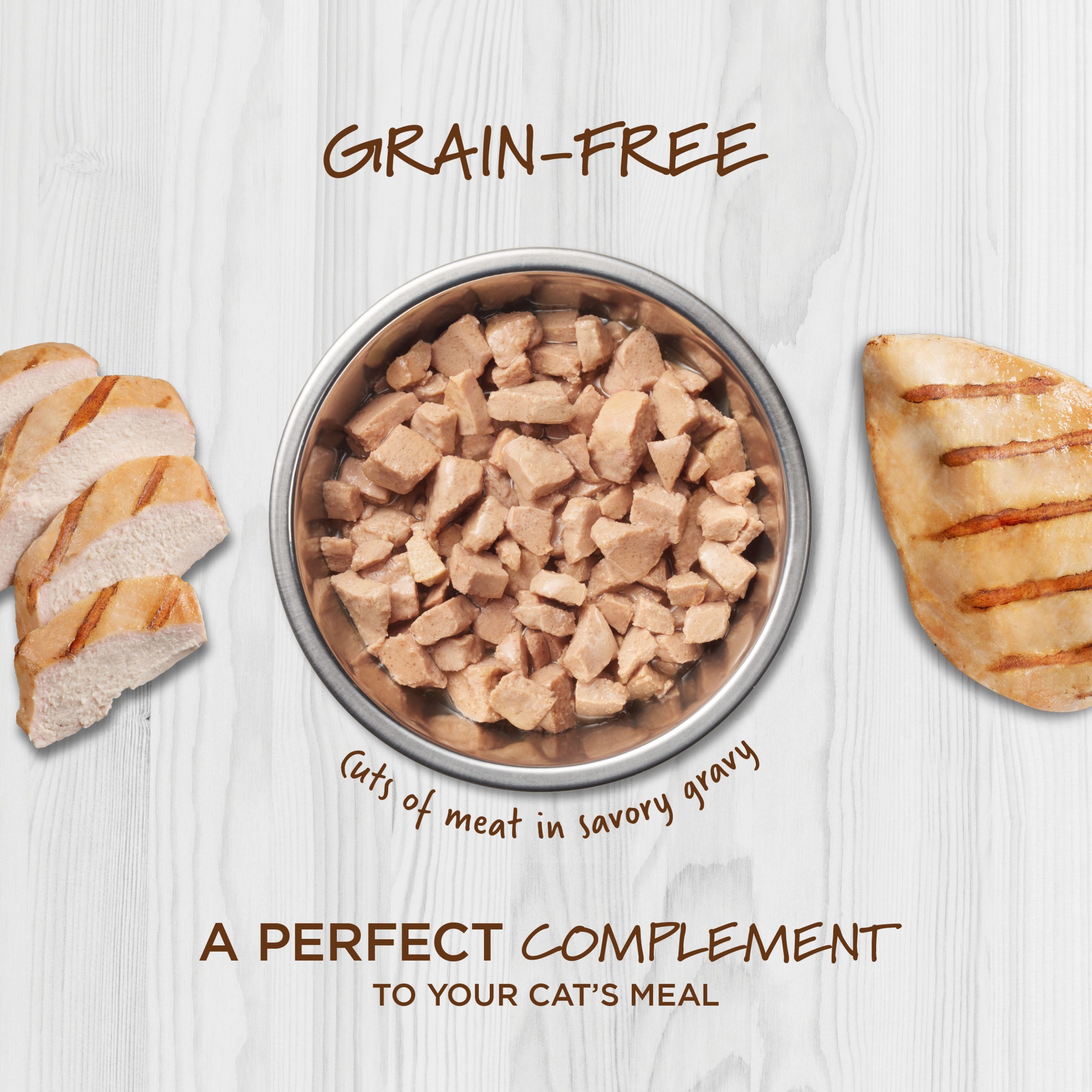 - Cuts of cage-free chicken in a savory gravy make the perfect meal complement.