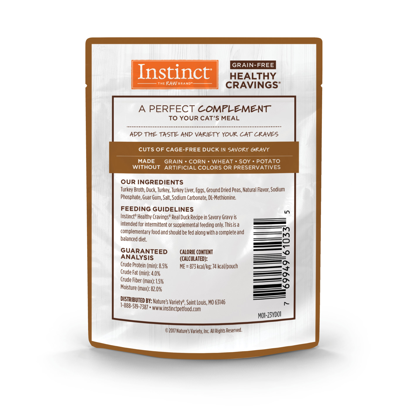 - Made without – grain, potato, corn, wheat, soy, by-product meal, artificial colors or preservatives