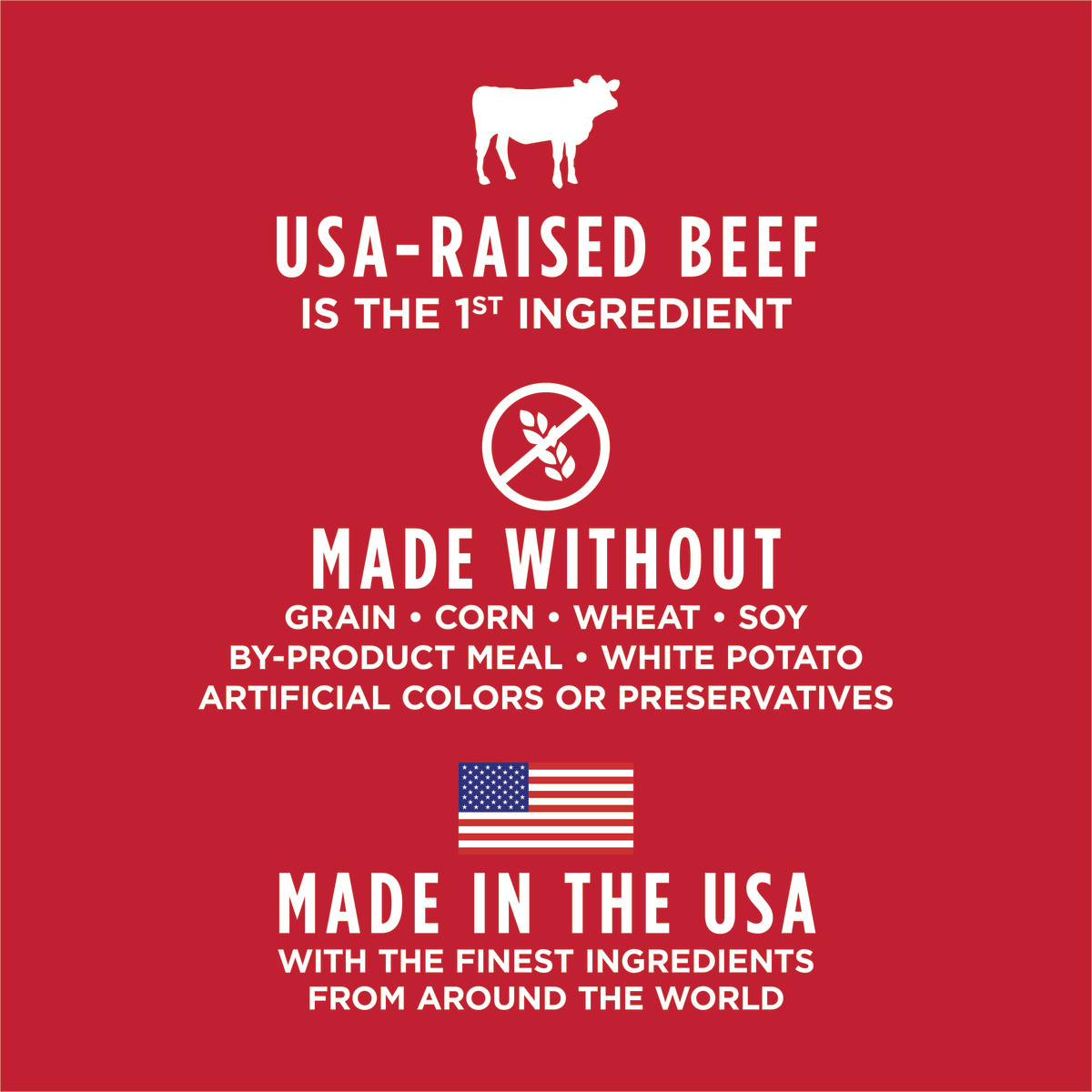 - USA-raised beef is the first ingredient – packed with animal protein for strong, lean muscles
