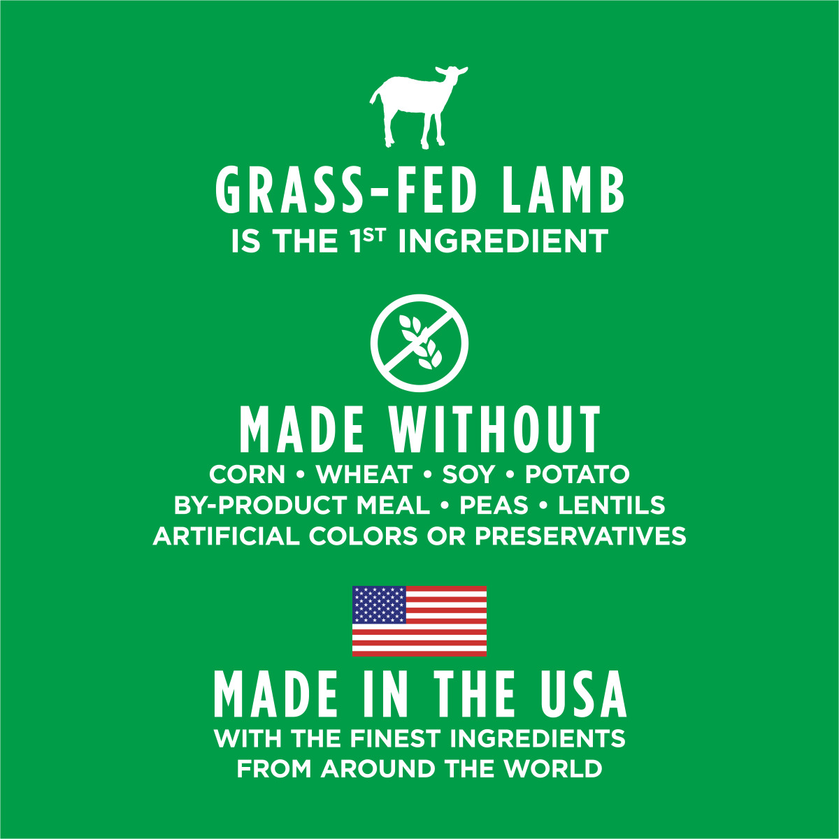 - Grass-fed lamb is the first ingredient – packed with animal protein for strong, lean muscles