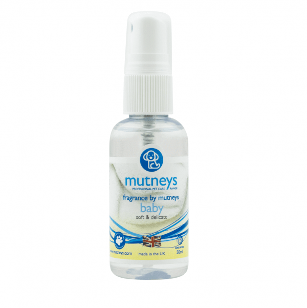 Mutneys ‘baby’ Finishing Spray has a delicate ‘talcum powder’ baby smell. It compliments our Mutneys ‘gentle puppy’ Shampoo too.