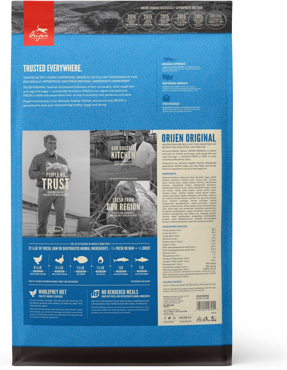 Help your pet thrive with the power of protein-rich recipes that nourish as nature intended. Dogs are ancestral carnivores, so their Biologically Appropriate diet is rich and varied in whole animal ingredients. ORIJEN® Original recipe is packed with 85%* quality animal ingredients fresh or raw+ like free-run chicken and turkey**, wild-caught fish, and cage-free eggs. With rich inclusions of Wholeprey animals, ORIJEN dog food is made with the most nutrient-dense, succulent parts of the prey to deliver the nutrition dogs need. The result is a diet for your canine companion that is beyond comparison.
