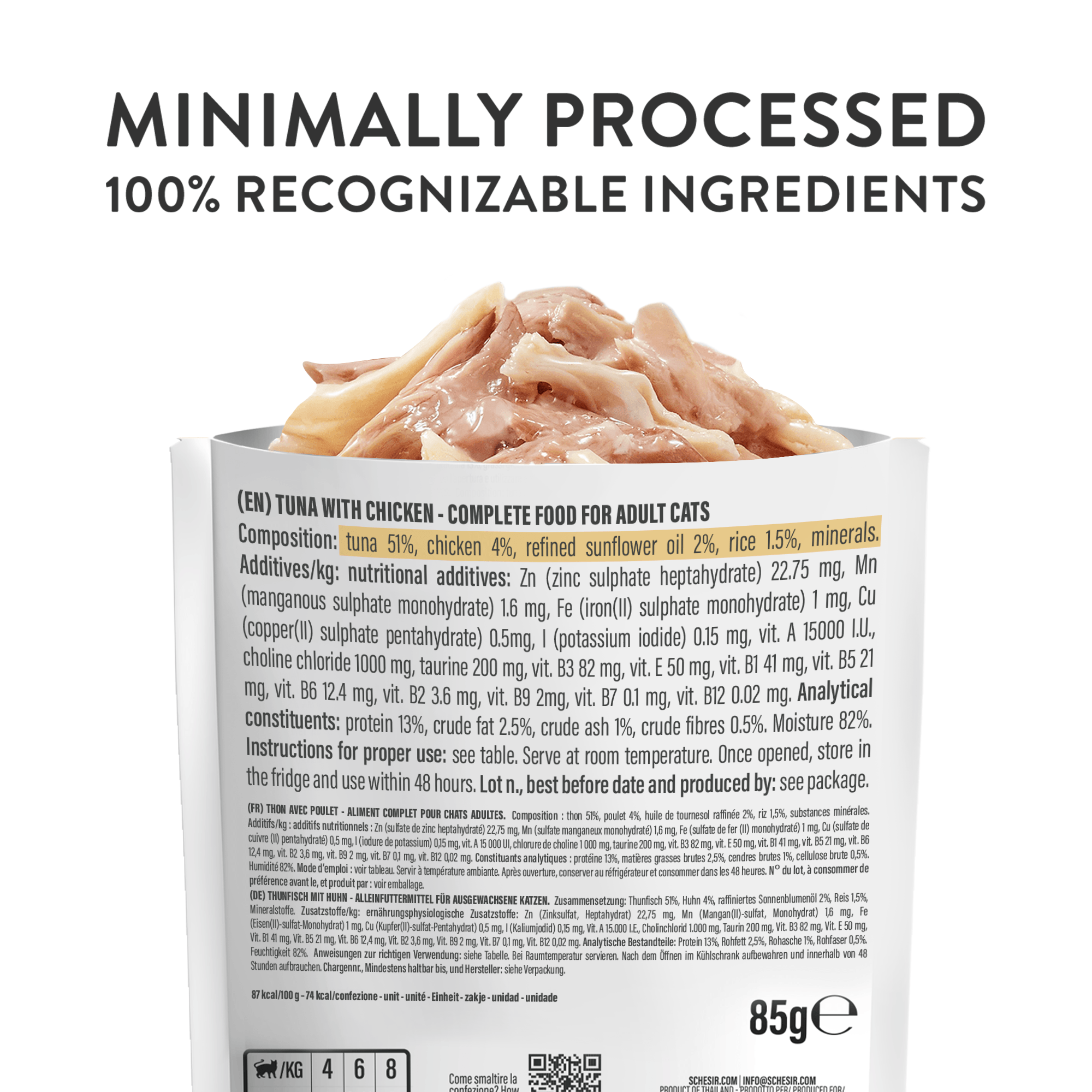 Real steamed tuna fillets with chicken in jelly for a natural and irresistible mix.