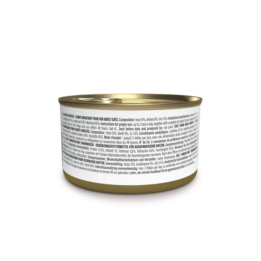 Real steamed tuna fillets with dentex in jelly for a natural and irresistible mix.