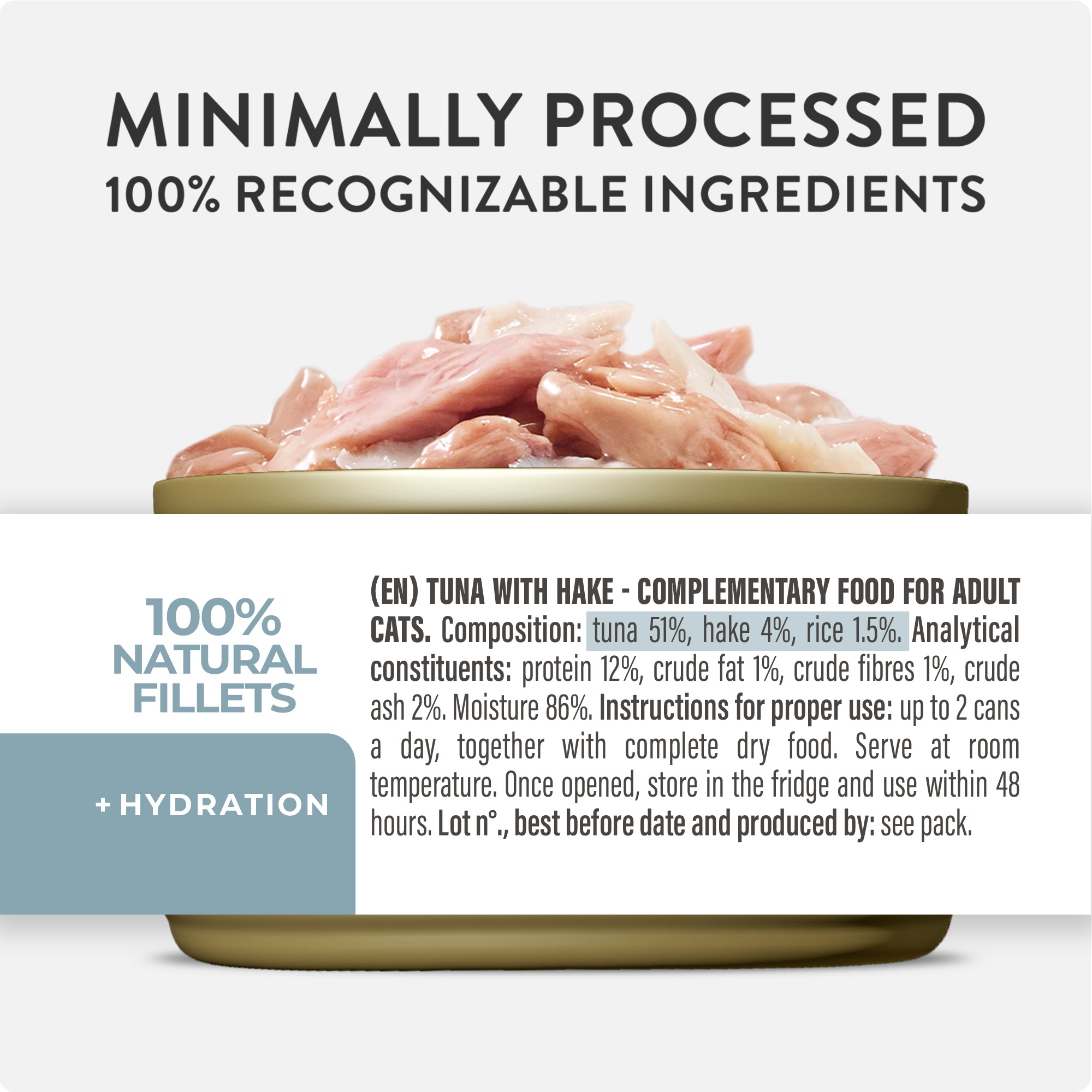 Real steamed tuna fillets with hake in jelly for a natural and irresistible mix.