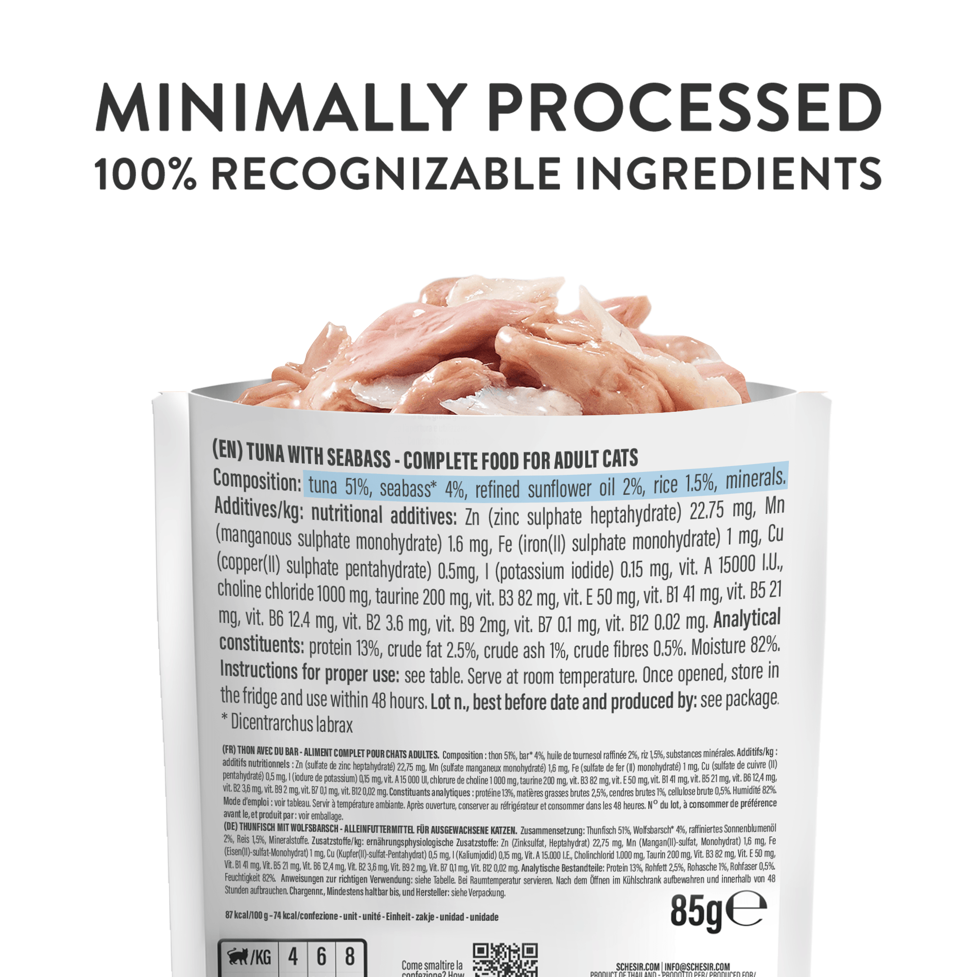 Schesir Complete Nutrition Tuna with Seabass Pouch in Jelly Wet Cat Food, 85g