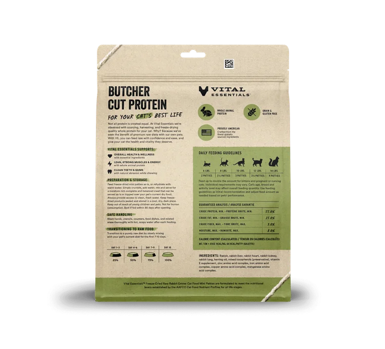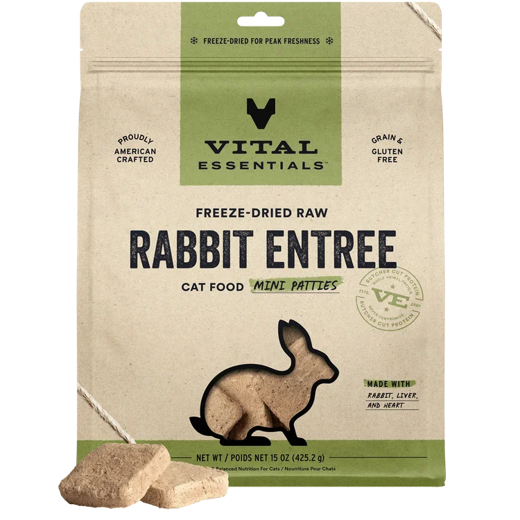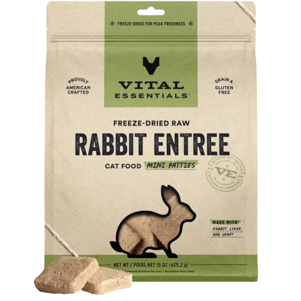 Vital Essentials Freeze-Dried RAW Rabbit Entree Mini Patties Dry Cat Food, 8oz
