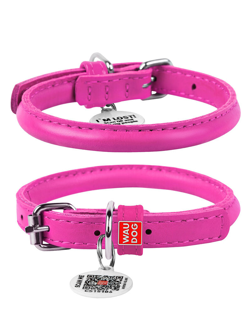 Waudog Glamour Leather Cat Collar with QR Tag, Pink, 22 to 30 cm