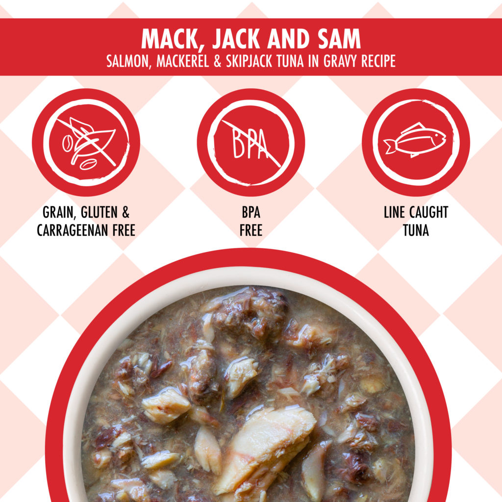 Weruva Cats in the Kitchen Mack, Jack & Sam, Salmon, Mackerel & Skipjack Tuna in Gravy Wet Cat Food, 85 g